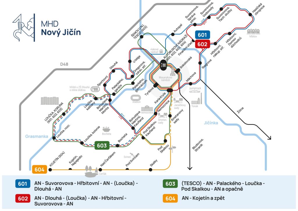 Byla také aktualizována mapa MHD ve stylu pražského metra, která kromě barevně odlišených linek 601-604 obsahuje také významné body ve městě, jako například Masarykovo náměstí, Čerťák, nemocnici, Tonak nebo stadion a zjednodušuje tak orientaci ve městě. Zastávka Riegrova je v ní již označena jako obousměrná (tj. plným kolečkem, nikoliv jen půlkolečkem).