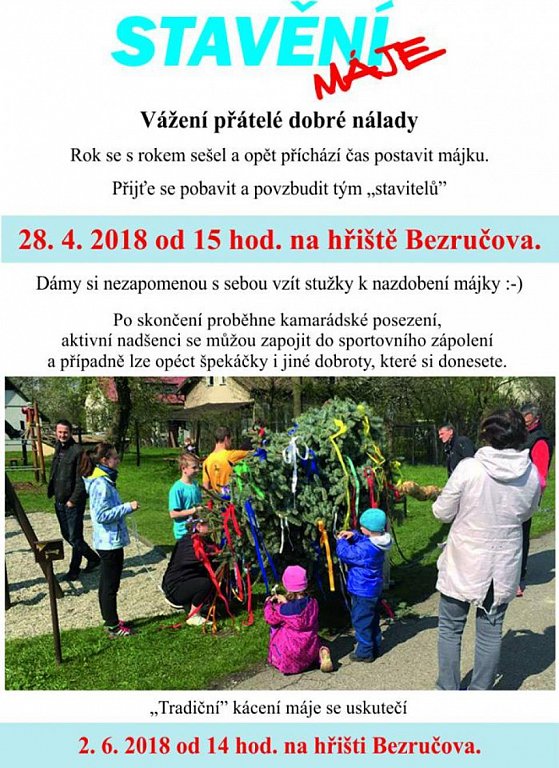 Frenštát pod Radhoštěm 2. 6. 2018 od 14:00 TRADIČNÍ KÁCENÍ MÁJE NA BEZRUČOVCE