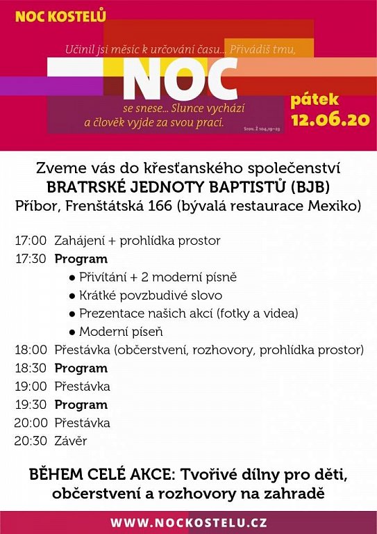 Příbor 12. 6. 2020 od 17:00 NOC KOSTELŮ