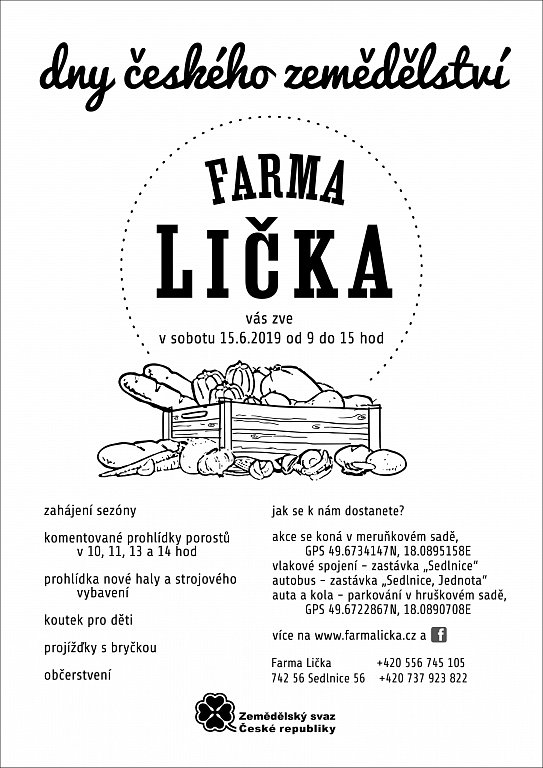 Sedlnice 15. 6. 2019 od 9:00 DNY ČESKÉHO ZEMĚDĚLSTVÍ – FARMA LIČKA