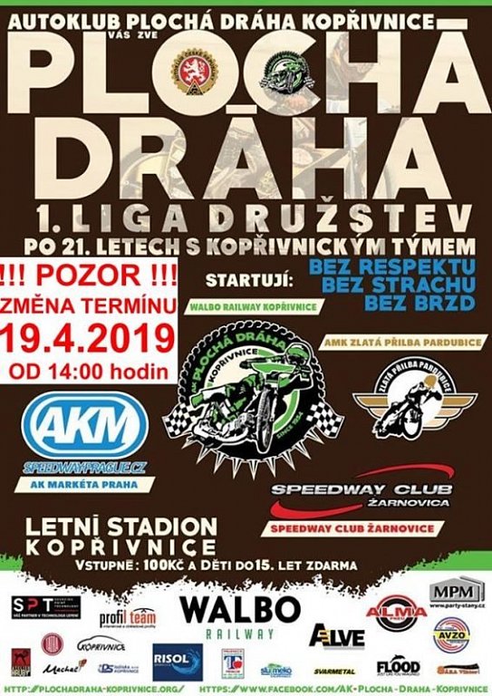 Kopřivnický tým pod hlavičkou WALBO RAILWAY Kopřivnice vstupuje po 21 letech do ligové soutěže, kde se utká na domácí dráze proti týmům Zlatá Přilba Pardubice, Markéta Praha a Speedway Club Žarnovice. Přijďte proto povzbudit naše kluky v bojích o medaile.