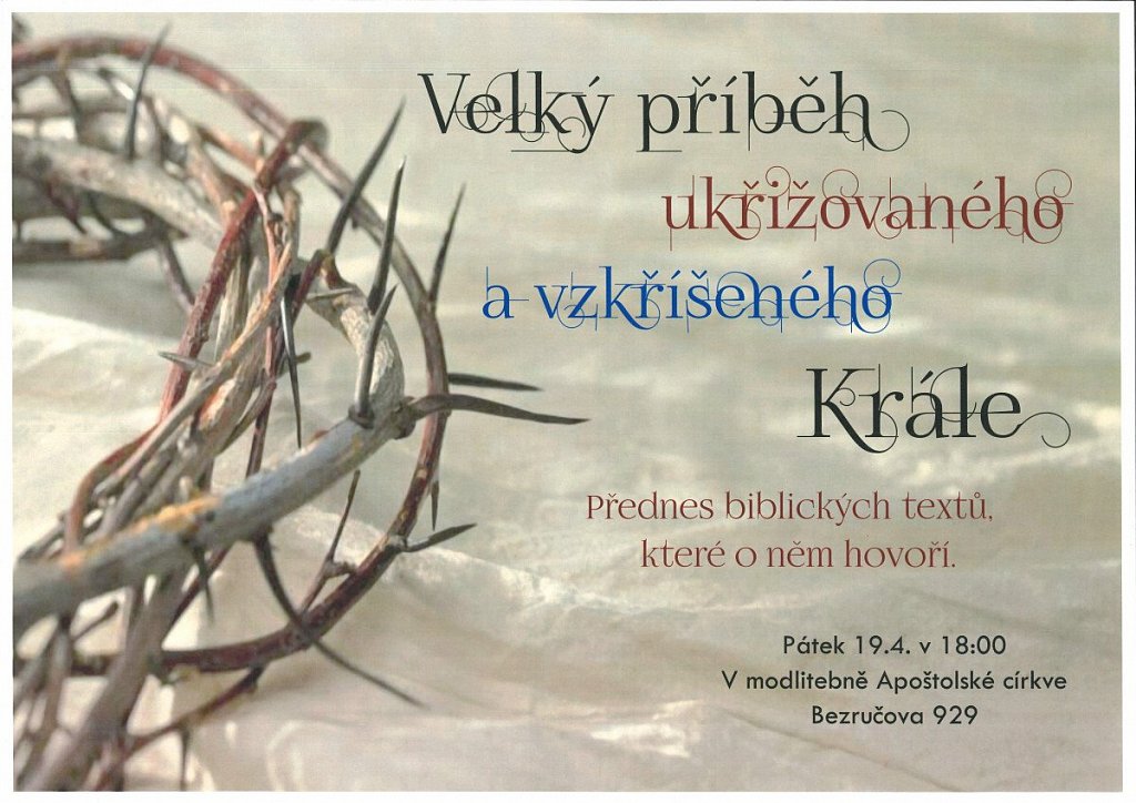 Místo konání: Modlitebna Apoštolské církve