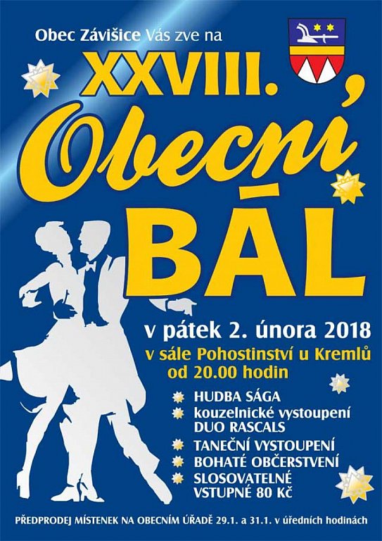 Hudba: Sága. Kouzelnické vystoupení Duo Rascals, taneční vystoupení, bohaté občerstvení. Předprodej místenek na Obecním úřadě v Závišicích 29.1. a 31.1. v úředních hodinách.