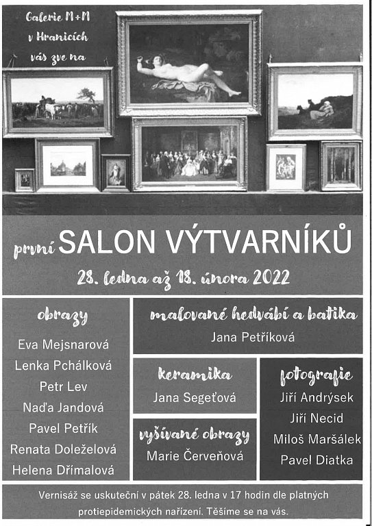 Hranice 28. 1. 2022 od 17:00 VERNISÁŽ PRVNÍ SALON VÝTVARNÍKŮ