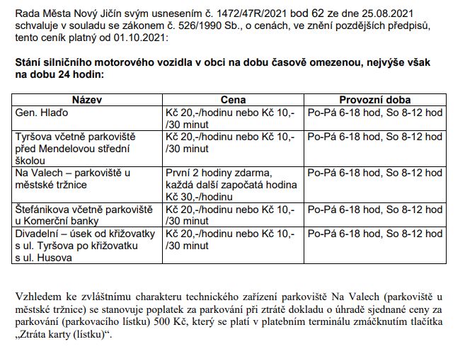 • Hlavní parkoviště Na Valech (u tržnice) - 2 hodiny parkování zdarma,