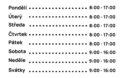 Poslední vstup do expozic je 30 minut před zavírací dobou.