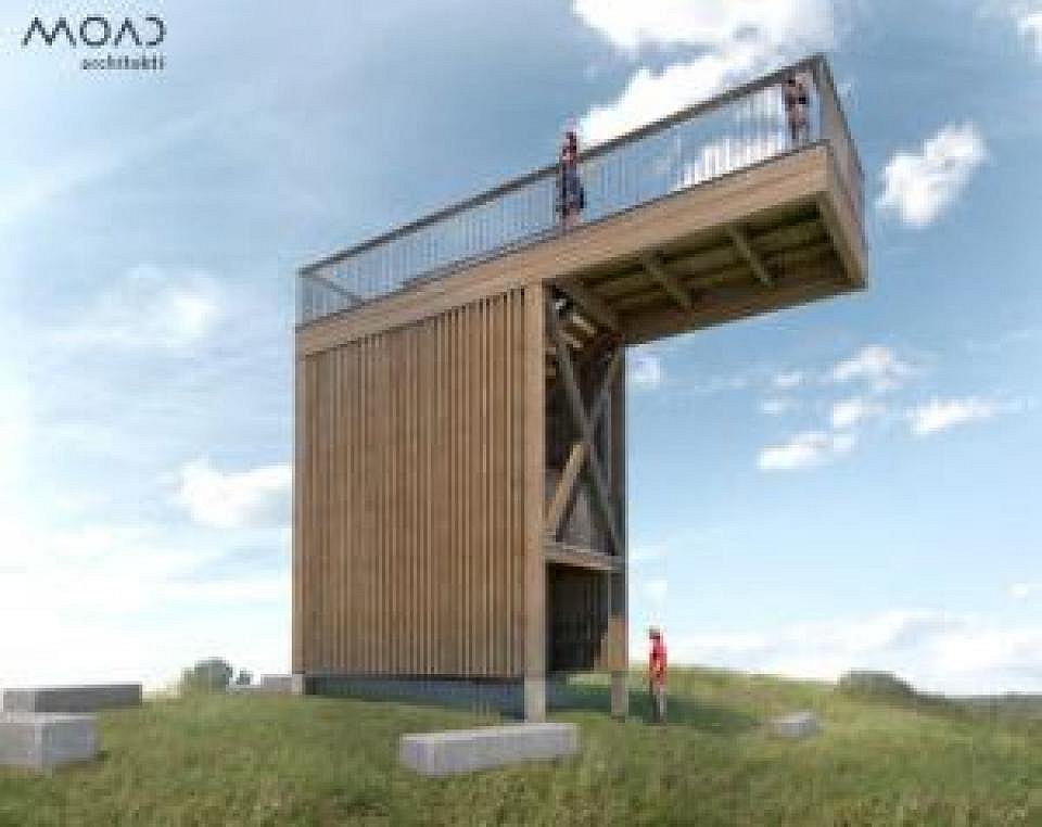 Dřevěná modřínová vyhlídka má tvar písmene L. Cílem je, aby základna byla co nejmenší – zhruba 5 krát 3 metry – a výhledová plošina byla velká tak, aby se po ní návštěvník mohl projít a přiblížit se tomu úžasnému rozhledu. Ve výšce 7 metrů nad terénem nabídne otevřený výhld všemi směry do krajiny,