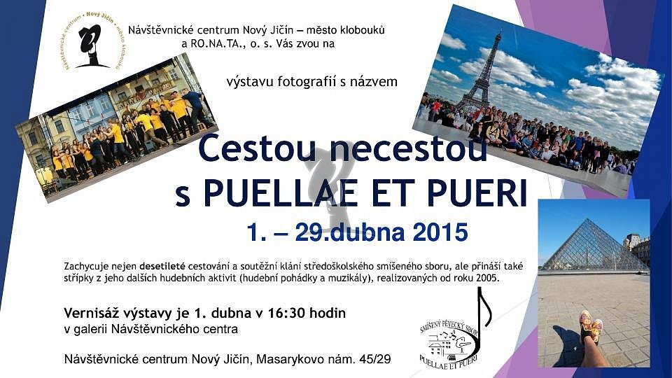 Zveme Vás na výstavu "Cestou necestou s PUELLAE ET PUERI" od 1.4 - 29.4 2015 v galerii Návštěvnického centra.