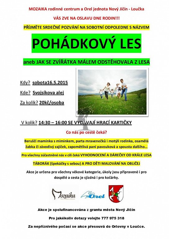 Tuto akci pořádá Mozaika společně s Jednotou Orel Nový Jičín - Loučka a je spolufinancována městem Nový Jičín.