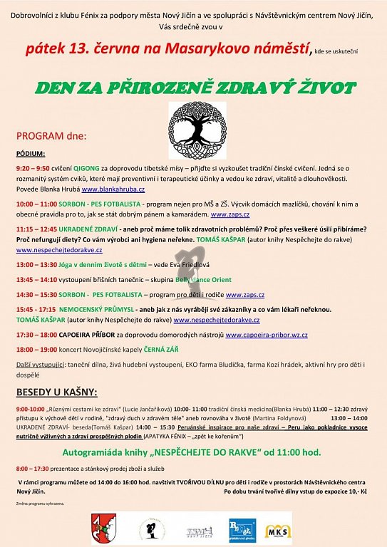 Dnes 13.6.2014 probíhá na Masarykově náměstí v Novém Jičíně akce "Den za přirozeně zdravý život". Jedná se o akci, která byla zrušena dne 16.5. kvůli nepříznivému počasí.