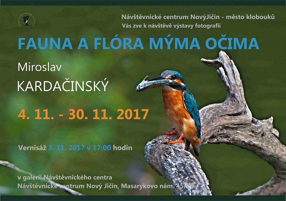 Návštěvnické centrum Nový Jičín - město klobouků a Miroslav Kardačinský (vášnivý fotograf přírody, člen fotoklubu Příbor), autor výstavy, si Vás dovolují pozvat na výstavu fotografií s názvem FAUNA A FLÓRA MÝMA OČIMA.