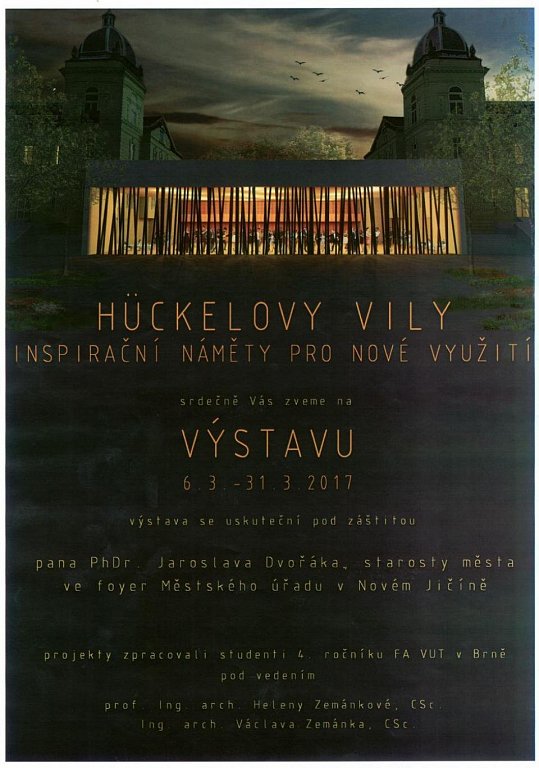Srdečně zveme na výstavu HÜCKELOVY VILY - INSPIRAČNÍ NÁMĚTY PRO NOVÉ VYUŽITÍ, která se uskuteční ve dnech od 6.3. do 31.3.2017 ve foyer Městského úřadu v Novém Jičíně.