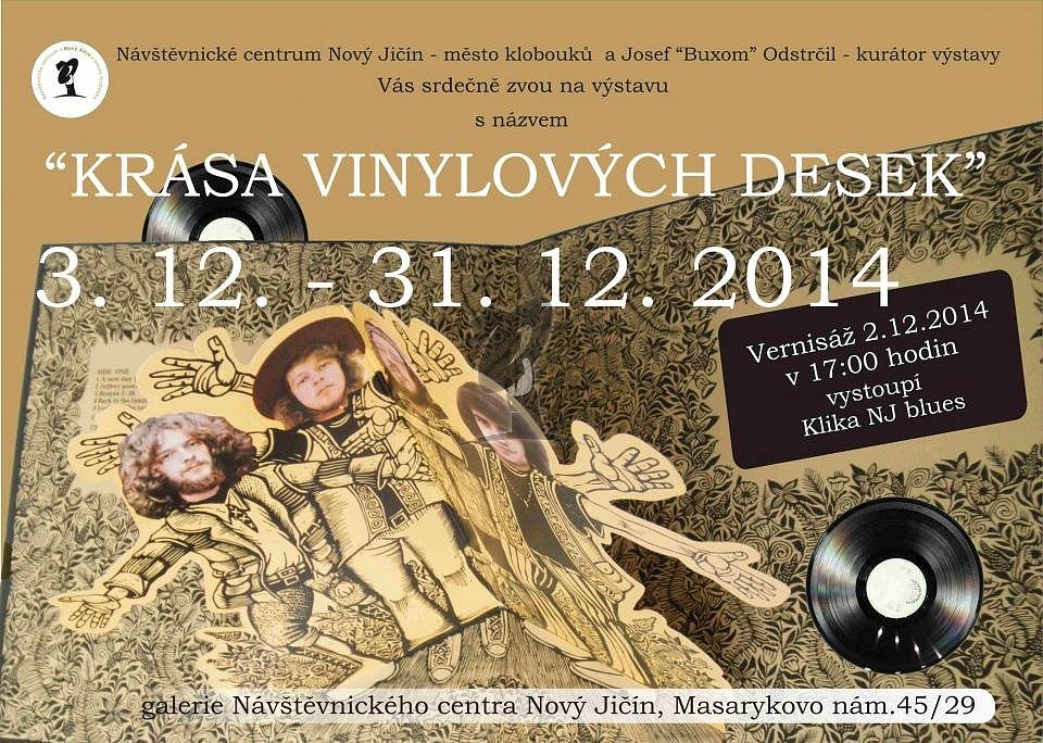 Návštěvnické centrum Nový Jičín - město klobouků si Vás dovoluje pozvat na výstavu s názvem "KRÁSA VINYLOVÝCH DESEK". Výstava přibližuje výjimečnost a jedinečnost výtvarného zpracování obalů vinylových gramofonových LP desek.