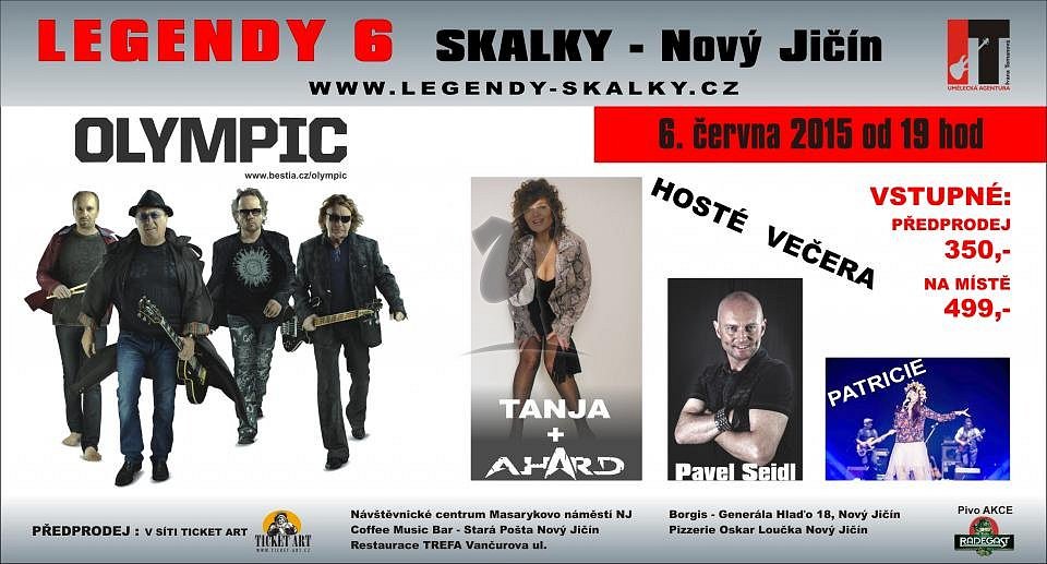 V sobotu 6.6.2015 od 19:00 vystoupí na Skalkách skupina OLYMPIC, hosté večera budou TANJA + AHARD, Pavel Seidl, PATRICIE