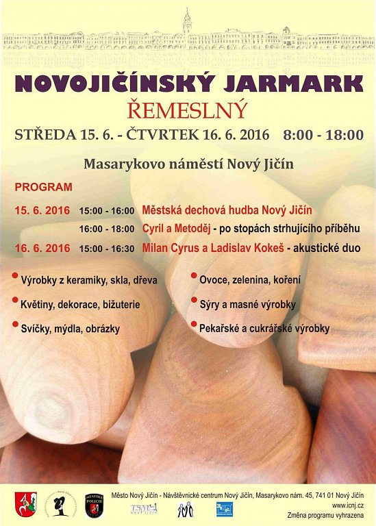 Ve středu a čtvrtek dne 15.6. - 16.6.2015 se můžete těšit na další Novojičínský jarmark plný řemesel, který proběhne na Masarykově náměstí s doprovodným programem od 8:00 do 18:00 hod.