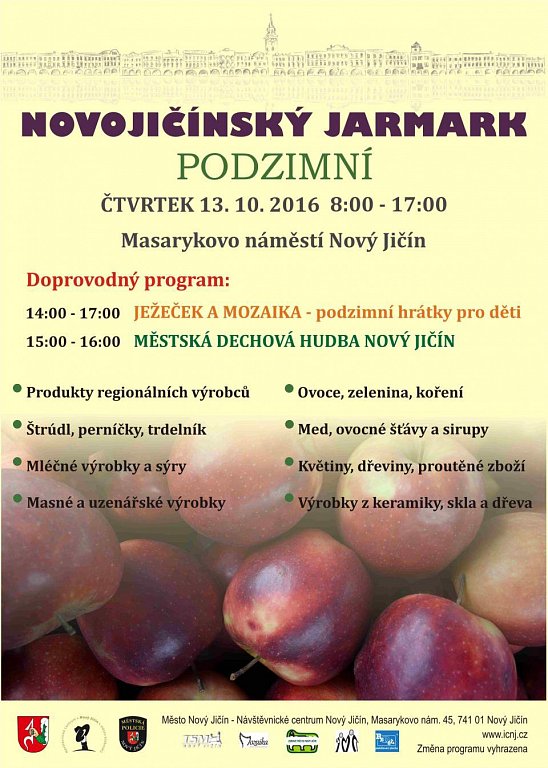 Dne 13.10.2016. proběhl na Masarykově náměstí v Novém Jičíně Novojičínský podzimní jarmark.