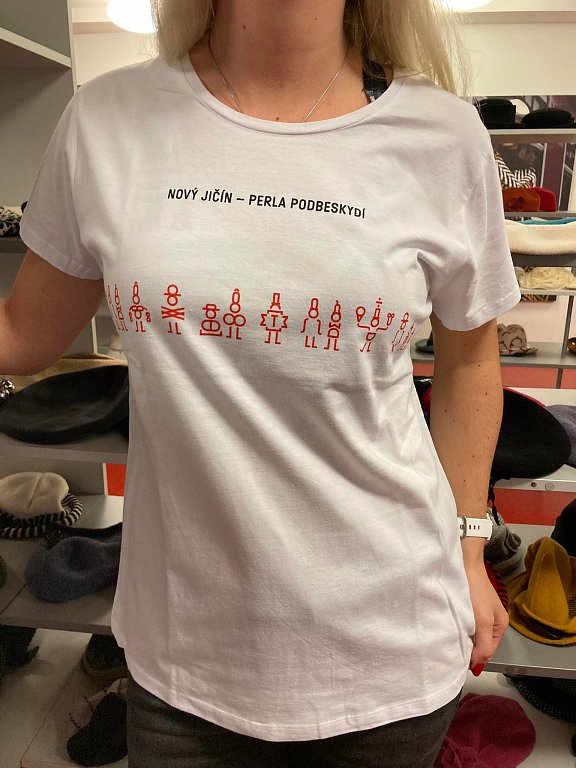 Nová trička zachycují vybrané dominanty náměstí a jeho blízkého okolí – farní kostel Nanebevzetí Panny Marie, Mariánský sloup, Starou poštu, Laudonův dům, radnici i Žerotínský zámek. Součástí vyobrazení jsou lidé, například maminka s dítětem, obchodník, senior, milenci, policista, cyklista, baťůžkář, muzikant nebo zmrzlinář. Lehce vtipným prvkem je skutečnost, že všichni mají na hlavě klobouk, protože ten prostě k Novému Jičínu patří.