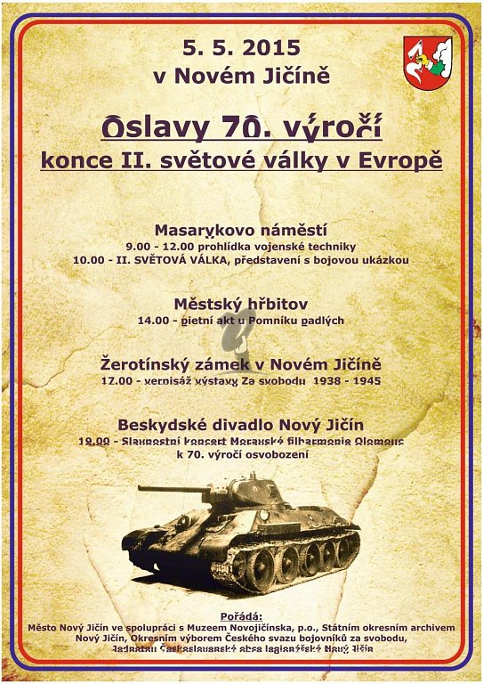 Zveme Vás na oslavy 70. výročí konce II. světové války v Evropě, které se uskuteční dne 5.5.2015 v Novém Jičíně.
