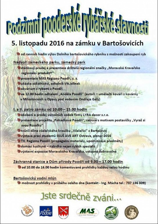 Podzimní pooderské rybářské slavnosti, spojené s výlovem Dolního bartošovického rybníka se uskuteční v sobotu 5. listopadu od 8:00 hodin.