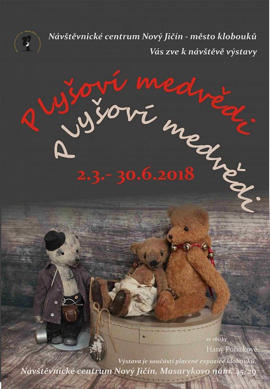 Do 30. června 2018 máte ještě možnost zhlédnout výstavu plyšových medvědů /teddybears/ ze sbírky Hany Pořízkové v placené expozici klobouků Návštěvnického centra.