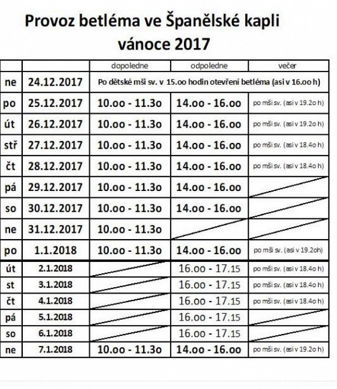 - Provoz betléma ve Španělské kapli - vánoce 2017