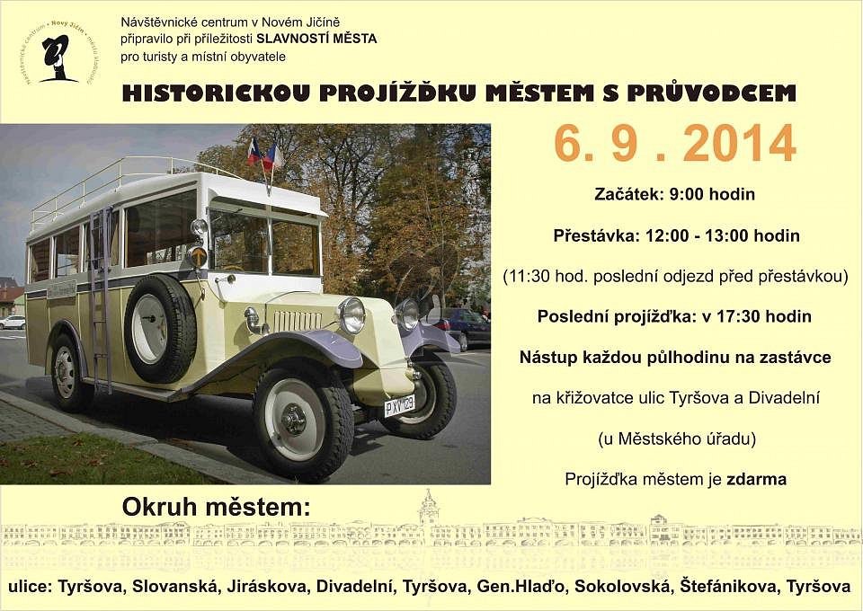 Při příležitosti Slavnosti města připravilo Návštěvnické centrum pro turisty i místní „Historickou projížďku městem s průvodcem“. Začátek v 9:00, nástup každou půlhodinu na křižovatce ulic Tyršova a Divadelní, poslední projížďka v 17:30. Polední pauza: 12:00 – 13:00, poslední projížďka před přestávkou v 11:30.