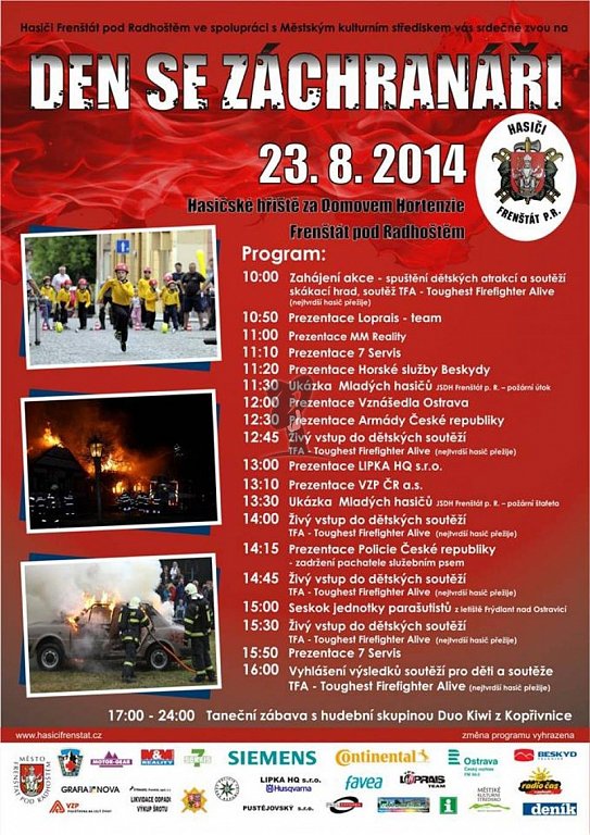 JSDH Frenštát p. R. pro vás připravil den se záchranář, které se uskuteční v sobotu na hřišti u domova Hortenzie. Přesné informace na samostatných plakátech.