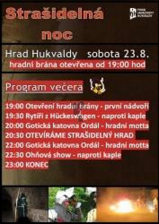 Srdečně zveme na sobotní večer, dne 23. srpna, kdy na hradě Hukvaldy proběhne jedna z nejočekávanějších akcí této sezóny - Strašidelná noc. Sjezd strašidel, bubáků a dalších nadpřirozených bytostí.