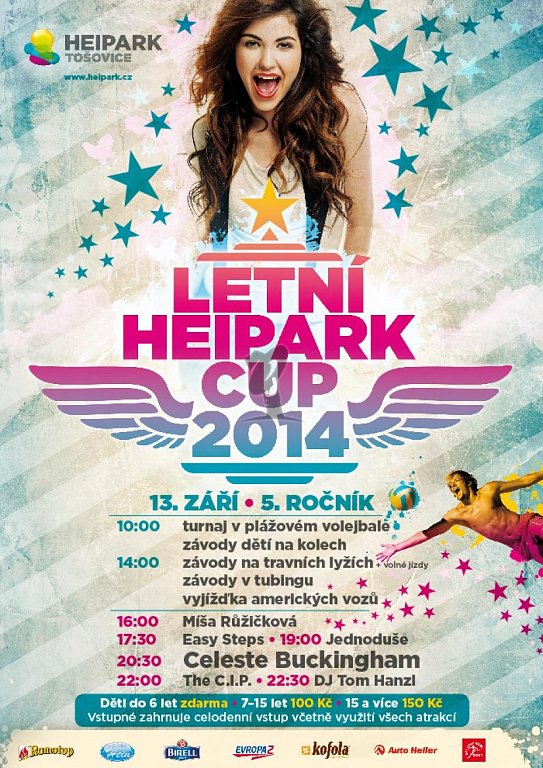 Den plný sportu a zábavy v HEIPARKU. Těšte se na vystoupení Celeste Buckingham, The C.I.P., večerní taneční party, show amerických automobilů, závody dětí na horských kolech, turnaj v plážovém volejbale, travní lyžování a další zábavu... Pro děti vystoupí Míša Růžičková...