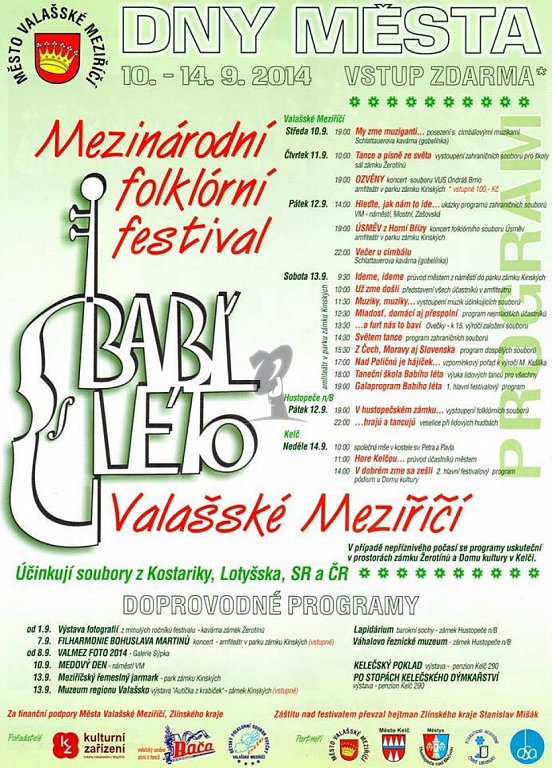10.9. – 14.9.2014 Valašské Meziříčí – Mezinárodní folklórní festival BABÍ LÉTO