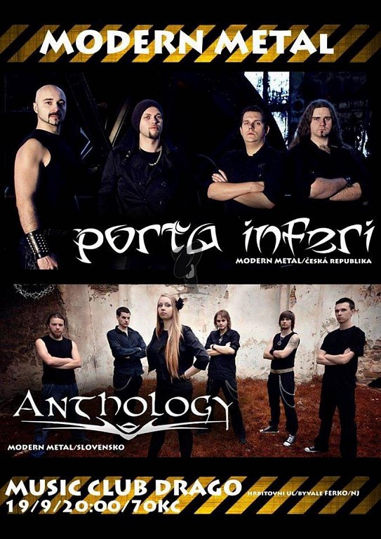 Již tento pátek 19.9 se můžete těšit na netradiční kapely PORTA INFERI a ANTHOLOGY které vystoupí v MC Drago