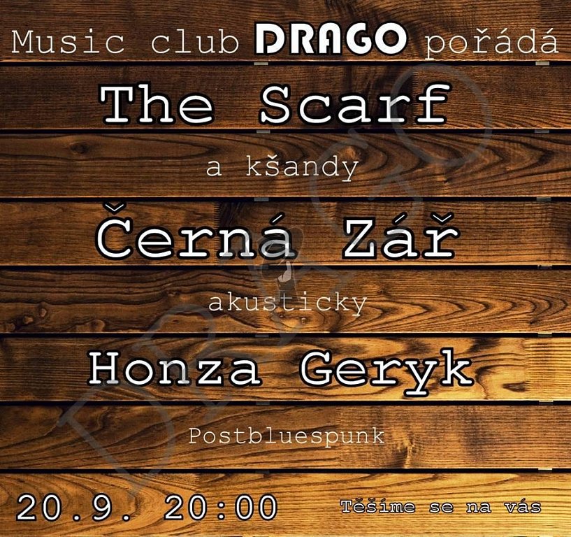 Přijďte si v sobotu 20.9. zpříjemnit večer do music clubu Drago v Novém Jičíně. Můžete se těšit na i závěrečný jammik, tak neváhejte si vzít svoje sólové triangly, dřívka a spoustu jiného náčiní. Těší se na vás: