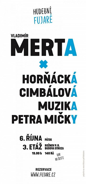 Rožnov pod Radhoštěm 6. 10. 2017 od 19:00 HUDEBNÍ FUJARÉ #3 – VLADIMÍR MERTA & HORŇÁCKÁ CIMBÁLOVÁ MUZIKA PETRA MIČKY