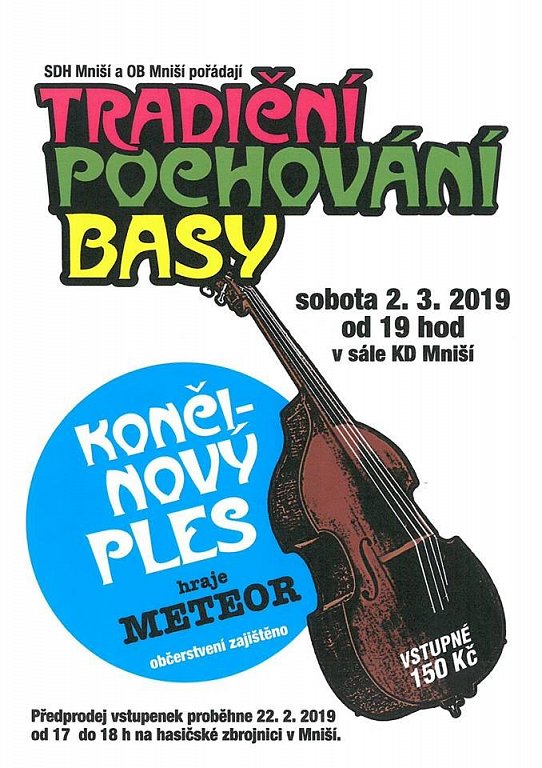 Kopřivnice 2. 3. 2019 od 19:00 TRADIČNÍ POCHOVÁNÍ BASY A KONČINOVÝ PLES