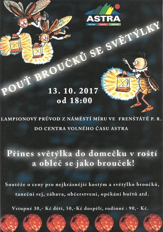 Frenštát pod Radhoštěm 13.10.2017 18:00 POUŤ BROUČKŮ SE SVĚTÝLKY