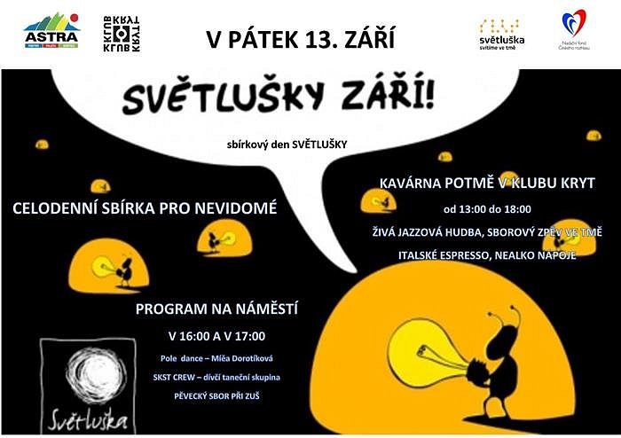 Sbírkový den SVĚTLUŠKY. Kavárna POTMĚ od 13:00 - 18:00. Program na náměstí od 16:00 - 17:00.