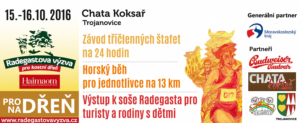 V sobotu 15. října ve 12:00 hodin startuje od chaty Koksař na Ráztoce v Trojanovicích běžecká štafeta tříčlenných družstev. Maraton na 24 hodin vyhrává ten tým, který zvládne v daném čase uběhnout co nejvíce soutěžních kol. Třináctikilometrový okruh vede letos i kolem sochy Radegasta, což bude pro závodníky, zejména v noci, kouzelný zážitek.