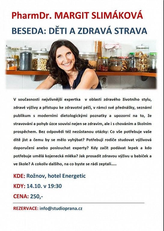 Rožnov pod Radhoštěm 14. 10. 2016 od 19:30 DĚTI A ZDRAVÁ VÝŽIVA: PŘEDNÁŠKA PharmDr. MARGIT SLIMÁKOVÉ