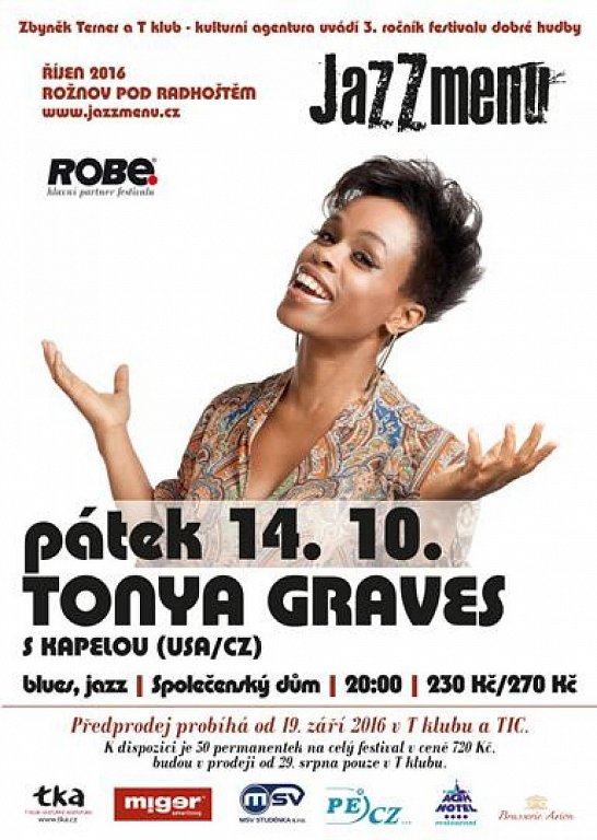 Rožnov pod Radhoštěm 14. 10. 2016 od 20:00 TONYA GRAVES S KAPELOU