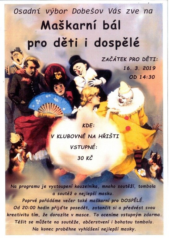 Od 14:30 Maškarní bál pro děti.