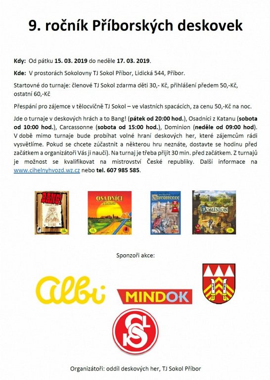 Příbor 15. 3. 2019 od 20:00 PŘÍBORSKÉ DESKOVKY