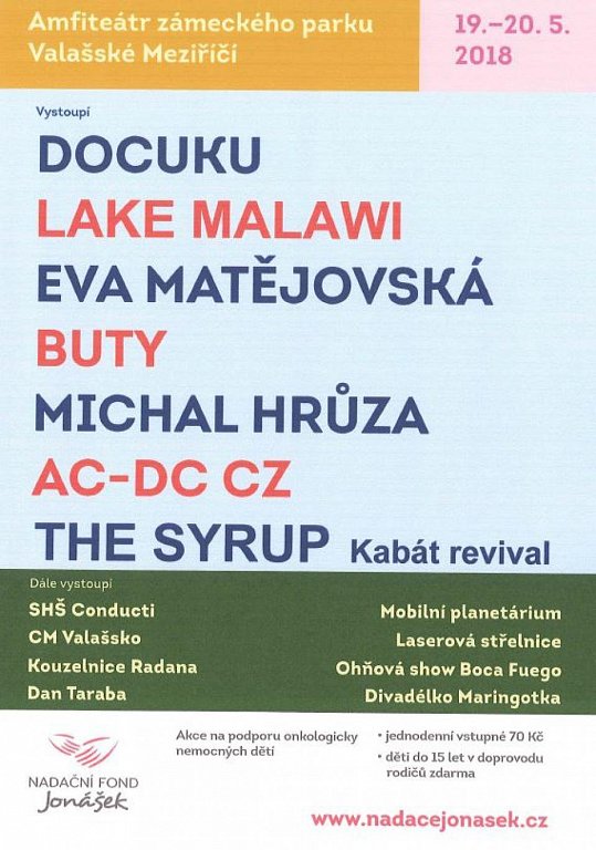 Lake Malawi, Eva Matějovská, The Syrup Kabát revival, Michal Hrůza, Docuku, Buty, Lava, AC-DC CZ, cimbálová muzika Valašsko a další
