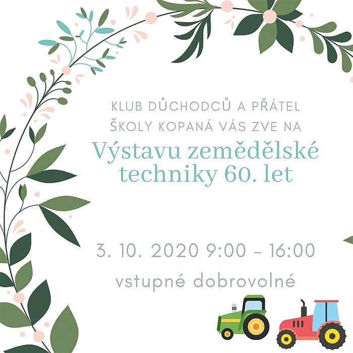 Na výstavu zemědělské techniky 60. let Vás srdečně zve Klub důchodců a přátel školy Kopaná