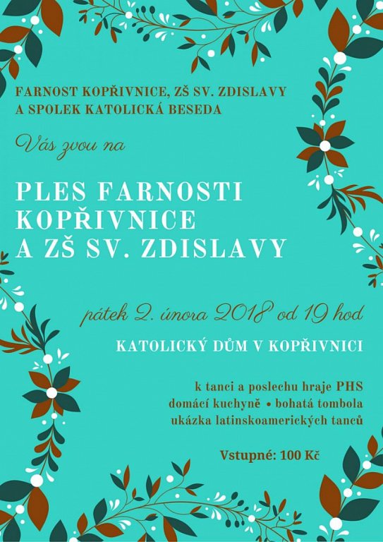 Kopřivnice 2. 2. 2018 od 19:00 PLES FARNOSTI KOPŘIVNICE A ZŠ SVATÉ ZDISLAVY