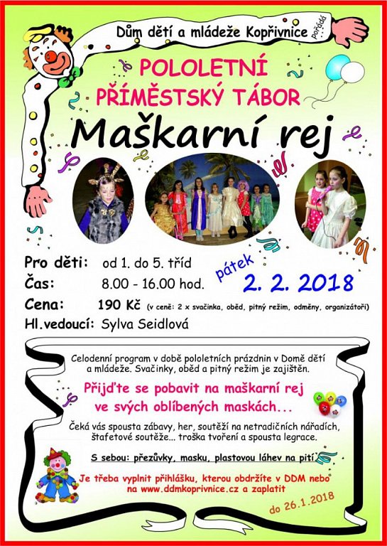 Kopřivnice 2. 2. 2018 od 8:00 do 16:00 MAŠKARNÍ REJ