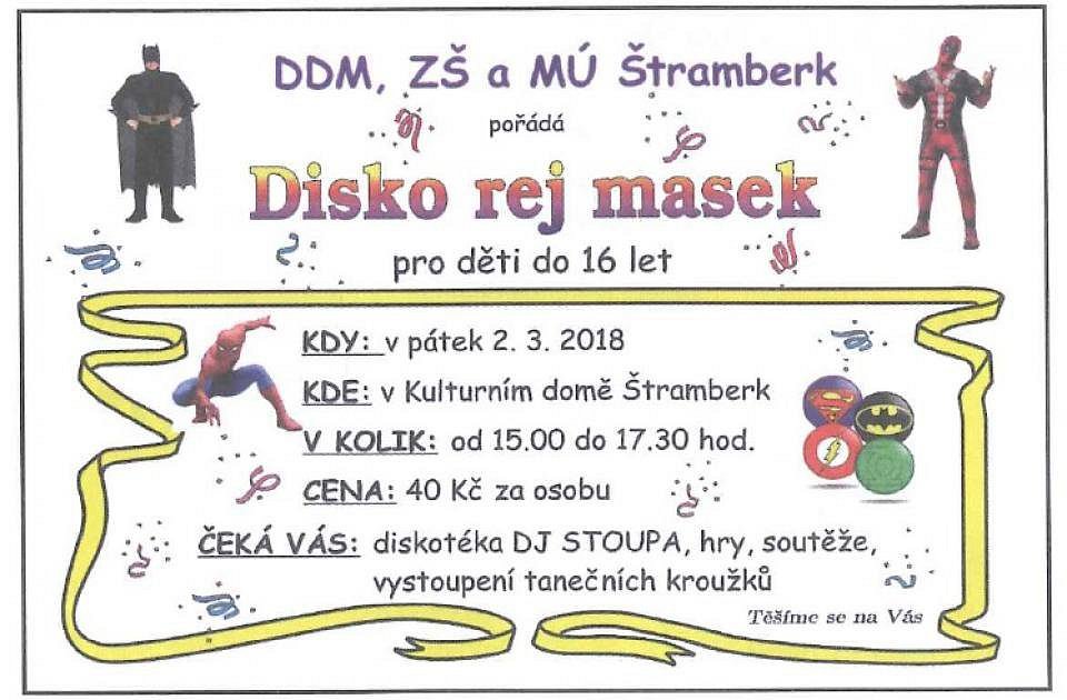 Studénka 4. 3. 2018 od 14:00 DĚTSKÝ MAŠKARNÍ REJ