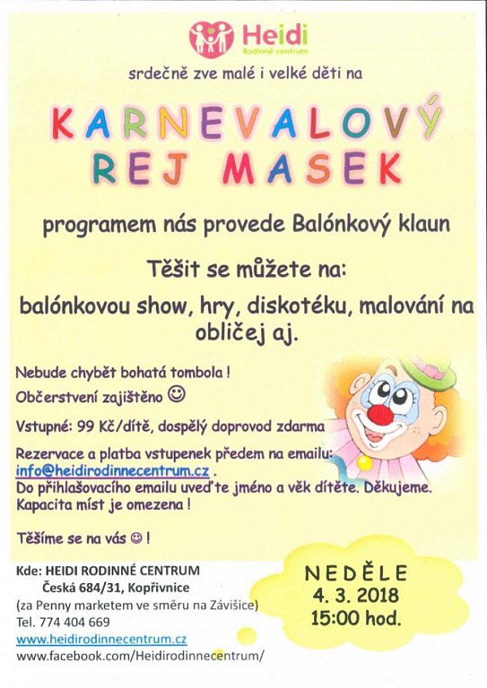 Bílovec 4. 3. 2018 od 14:00 DĚTSKÝ MAŠKARNÍ PLES A HEIDI JANKŮ