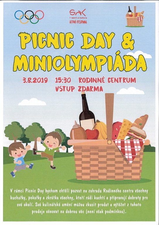 Studénka 3. 8. 2019 od 15:30 PICNIC DAY A MINIOLYMPIÁDA