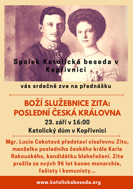 Kopřivnice 23. 9. 2018 od 16:00 BOŽÍ SLUŽEBNICE ZITA – POSLEDNÍ ČESKÁ KRÁLOVNA