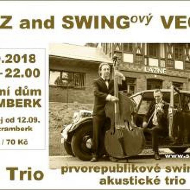 Po březnovém Rock and rollovém večeru a květnovém Večeru s dobovou hudbou Devětsil nás v září čeká již třetí Multižánrový večer. Tentokrát jej věnujeme jazzu a swingu. Hrát a zpívat přijede prvorepublikové swingové akustické trio hrající hudbu třicátých a čtyřicátých let dvacátého století. Zazní šlágry první republiky v podání Ladislava Kokeše (housle, kornet, melofón, zpěv), Aleše Nitry (kytara, ukulele, zpěv) a Milana Holuba (kontrabas).